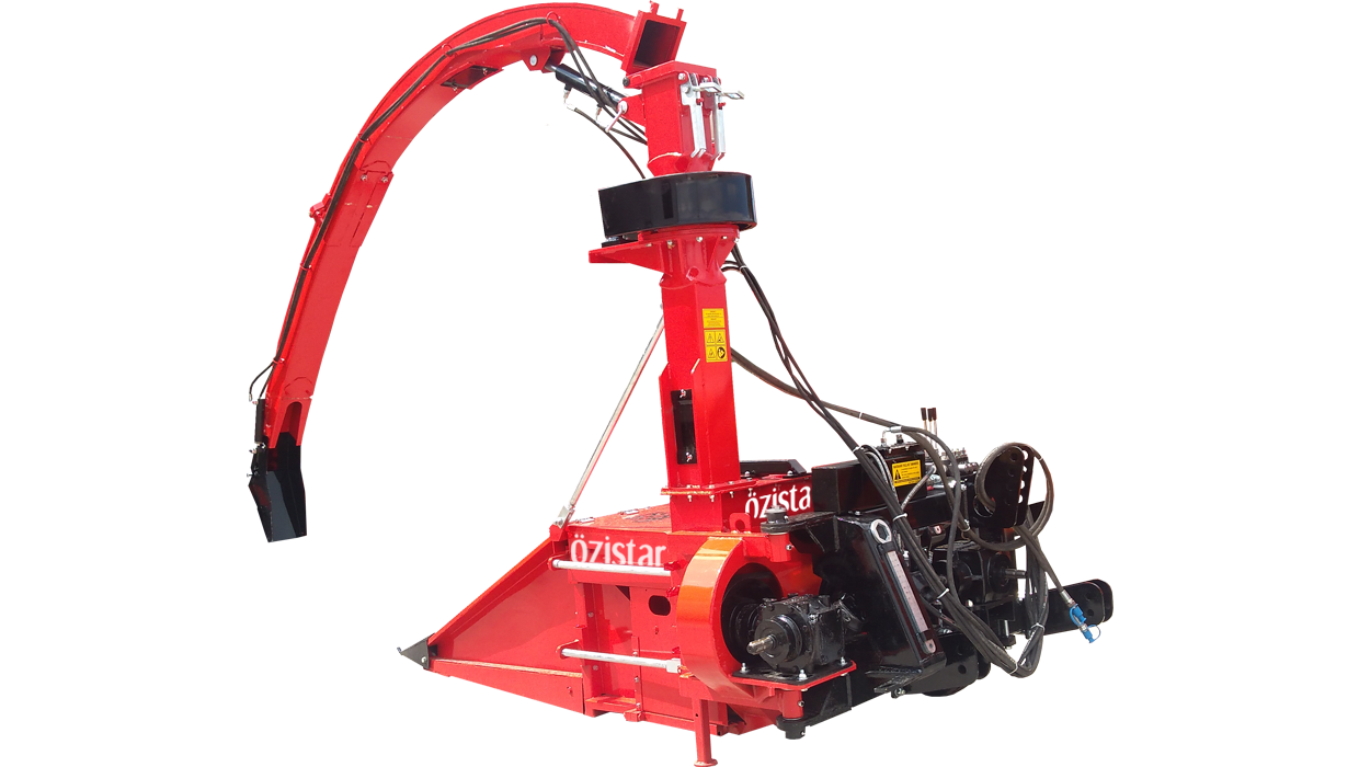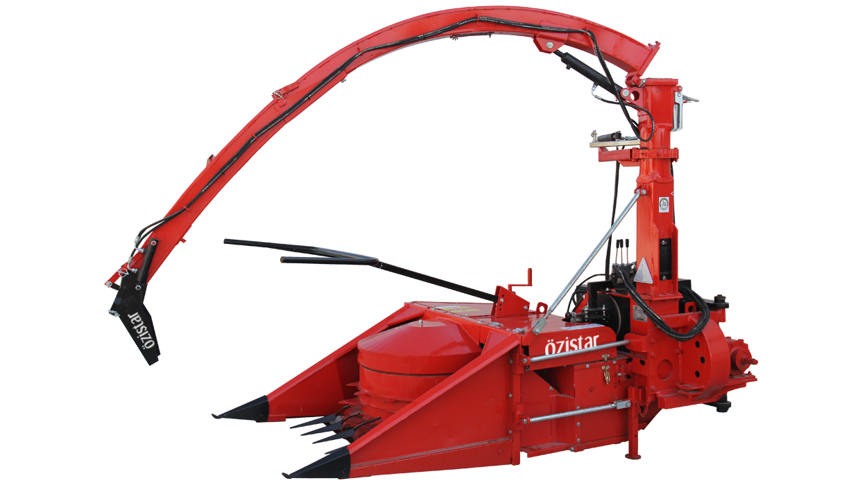 • Makine 1.25 metre genişliğindeki kesici ve besleyici tambur sayesinde sıra gütmeden hasat edebilmektedir. Makinenin en önemli özelliklerinden biri bükülebilir şase tasarımı sayesinde traktörün arkasına çevrilerek geriye doğru hasada imkan tanımasıdır. Bu özellik sayesinde tarlanın ortasında yol açılarak, daha az tur atılabilmekte ve mazot sarfiyatı azaltılabilmektedir Kesici ve besleyici tambur mısırları keserek besleyici üniteye iletmektedir.. Besleyici ünite, üzerinde parçalayıcı bıçaklar olan fanı, doğru açıda besleyerek en iyi kalitede parçalamayı sağlar. Üzerinde 12 adet özel olarak sertleştirilmiş bıçak olan fan yaklaşık olarak 1400 dev./dak. süratle dönmektedir. Mısırın parçalayıcı fana gitmesini sağlayan iki adet besleyici tambur, iki adet de baskı tamburu bulunmaktadır.